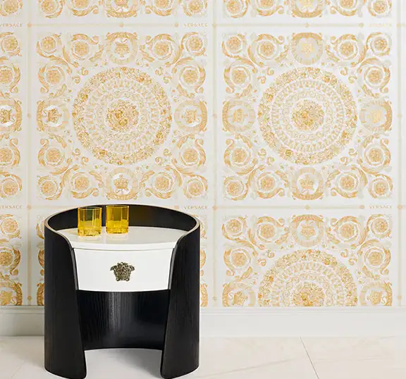 เอกลักษณ์ของวอลล์เปเปอร์เวอซาเช่ คือความหรูหราอลังการที่มาพร้อมกับสีทอง เงิน ดํา น้าเงิน และเพิ่มการตกแต่งให้เข้าสมัยมากขึ้นกับสีเอิร์ธโทนภายใต้คอนเซ็ปต์หลักกว่า 9 กลุ่มลายในดีไซน์ศิลปชั้นสูง แบบฝรั่งเศส (Les Etoiles De La Mer 2) ในยุคเฟื่องฟูคริสต์ศตวรรษที่ 16 – 17 สไตล์ภาพวาดแบบ ลาติน (Venitos) และต้นฉบับความเป็น Versace ผ่านสัญญลักษณ์เมดูซา (Meduso) ลายธรรมชาติ หนังสัตว์ลายเสือยิ่งใหญ่ (Vosmoro) ลายอิฐสลักชั้นสูงอิตาเลียน (Va Gesu) ลายธรรมชาติสุดหรู (Butterfly Borocco) ลายธรรมชาติแห้งท้องทะเล (Les Etoiles De La Mer) ลายไม้ดอกบารอคโค (Borocco Flowers) และปิดท้ายด้วยลายเส้นสลับสไตล์กรีก (Greek) ที่จะสามารถนิยามคําว่า คฤหาสน์ ให้คู่ควรแก่การตกแต่งได้ทันที